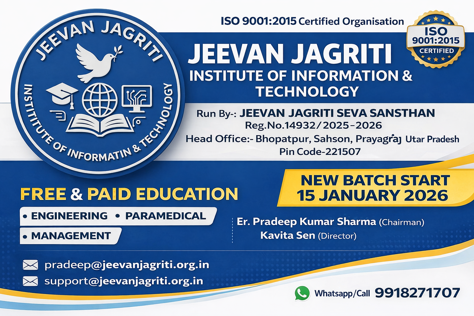 Jeevan Jagriti Seva Sansthan is social NGO founded by Mr.Pradeep Kumar Sharma. Jeevan Jagriti Seva Sansthan is working on the burning issues of health, education and employments across India. The main objective of the members of this organization is to provide health education and employment to the poor, helpless, and economically weak people of entire India. The basic objective of this organization is to provide relief to the poor and middle class people of India from the fact that a large part of their hard-earned money is being spent on medical treatment due to fraud and wrong treatments. Jeevan Jagriti Seva Sansthan is arranging free treatment courses all over India through its Ayurvedic packs prepared for various incurable diseases. Along with h..