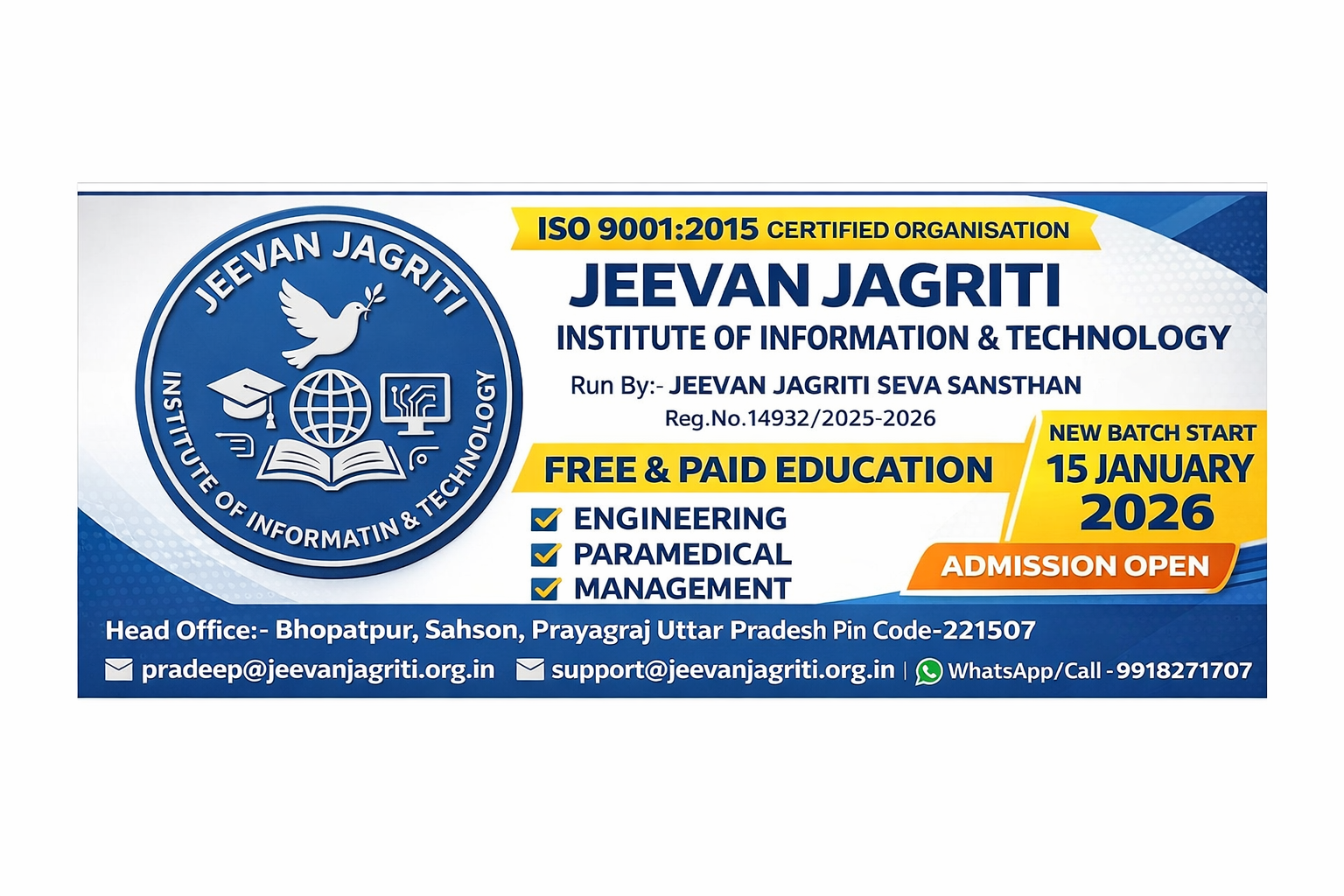 Jeevan Jagriti Seva Sansthan is social NGO founded by Mr.Pradeep Kumar Sharma. Jeevan Jagriti Seva Sansthan is working on the burning issues of health, education and employments across India. The main objective of the members of this organization is to provide health education and employment to the poor, helpless, and economically weak people of entire India. The basic objective of this organization is to provide relief to the poor and middle class people of India from the fact that a large part of their hard-earned money is being spent on medical treatment due to fraud and wrong treatments. Jeevan Jagriti Seva Sansthan is arranging free treatment courses all over India through its Ayurvedic packs prepared for various incurable diseases. Along with h..